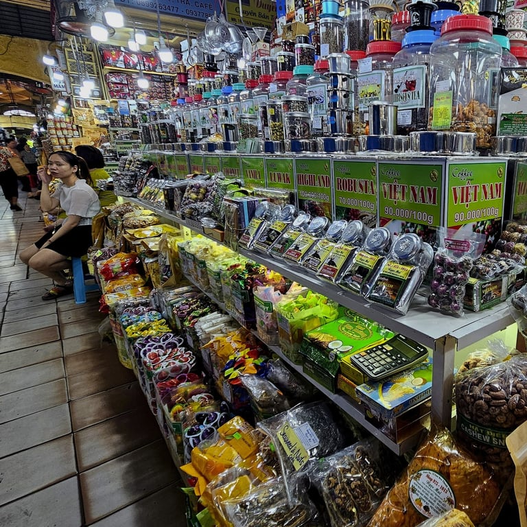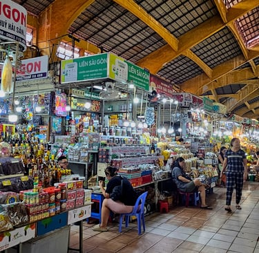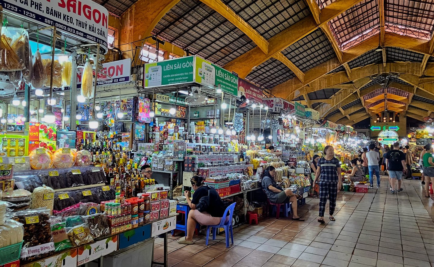 Ben Thanh Market is a kind of ‘forever’ symbol of central Saigon. It seems to have always been there in one form or another and when wandering you often seem to end up there whether you wanted to or not. It was destroyed by fire in 1870, rebuilt in colonial times (1912) and renovated in 1985. It has over 1,500 stalls and can expect about 10,000 visitors daily. The experience of making your way through the labyrinthine lanes is to invite upon yourself a wave of quite strident requests to buy-try-taste-sniff this or that. As market denizens go, they are somewhere on a scale of ‘actively pushy to indifferently pushy’. You don’t need to go twice, it’s true, but where else can you buy that wig-sunglasses-flip flops-ao dai-lotus seed combo that you have been hankering after all week, and finish up with a bowl of pho?