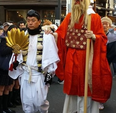 From 3rd-5th February each year there is a chance for a new beginning. The Setsubun Festival heralds, 'Demons out - good luck in!' The demon, or Oni, parades through the streets giving you a clear target for hurling your roasted soy beans as you chase away your cares and woes. You can also stock up on the beans to take home. Good fortune is ensured for the coming year by eating the number of beans of your age, plus one. Quite a meal for many in ageing Japan!