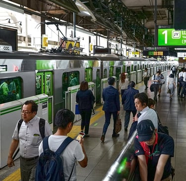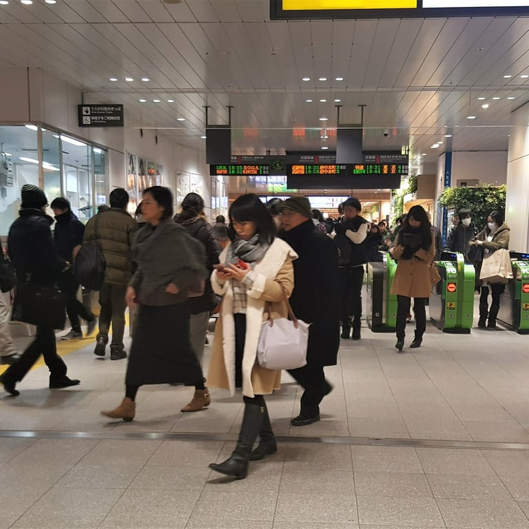 Commuting by train in Japan is a staple for the largely urban population, and often a rite of passage even for elementary aged kids. Organising it is a prodigious feat of logistical planning. These figures for Japanese stations are millions of passengers per day: Shinjuku–3.6M; Shibuya–3.0M; Ikebukuro–2.5M; Umeda (Osaka)–2.3M. The list goes on endlessly. So, cycle from the house, park your bike and dash for the train - how the day begins for so many. There is such a buzz of excitement as you press your Suica Card to the automatic gate and join the throng; or do the same to exit before seeing what’s for dinner – whatever’s left in the pre-packed sushi section of Perie supermarket, probably! As a visitor, just bite the bullet and join in. Your phone app will plot the route for you and everything will go like clockwork, exactly as published.