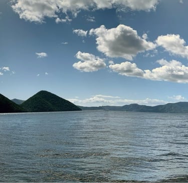 Lake Toya , near Toyako, on the island of Hokkaido is a caldera or crater lake which formed 110,000 years ago. It is roughly circular with a circumference of some 10 kms. The Nakajima Islands in the middle of the lake are lava domes dating from 50,000 years ago and give the lake its picturesque appearance. The islands are uninhabited apart from wild animals and a summer museum for visitors. On the southern rim is Mt Usu, a still active volcano, which erupted recently in the year 2000. You can drive round the pretty lake or take the ropeway up to the Mt Usu Observatory for a windswept view down the coast or back towards the lake.