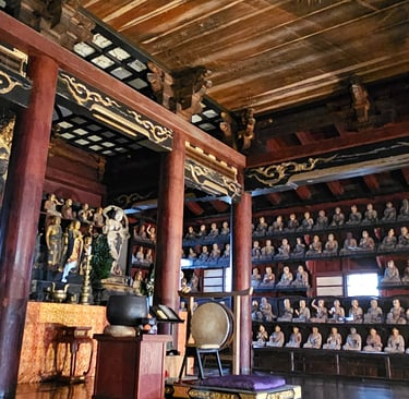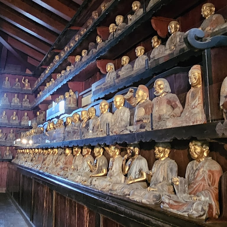 The temple was built in 1394 and moved to its current location some 200 years later. It is now a Zen training centre for monks as well as a place for ‘sitting meditation’ for the public. The serene temple grounds lead to the Rakando building (statues hall) which houses 500 Rakans – these are Buddhist saints who have attained Nirvana, their effigies stacked in neat rows all around. The statues were made in Kyoto, each sculpted with a different pose and expression. Together, all the statues represent the celestial world – while looking at them you are advised to stay silent as one should in the way of Zen.