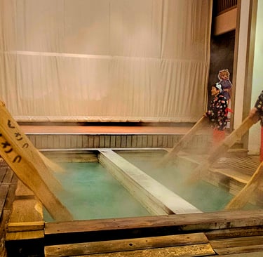 Ginzan Onsen is a picturesque town astride the Ginzan River up in the mountains of Yamagata Prefecture. It owes its origins to silver mining centuries ago which also led to the discovery of the hot-water springs. Once the silver had been exhausted, the town made a name for itself as an onsen resort; the current guest houses and onsen date from the 1920s. Now you will be paying top-dollar to stay overnight and take in the gas lantern-lit film setting experience. Without your own car it will likely be a two-hour train and bus trip from the city of Yamagata in the northern Tohoku region. Worth it, no question - you can even warm your feet up in the hot-springs troughs on the bridges.