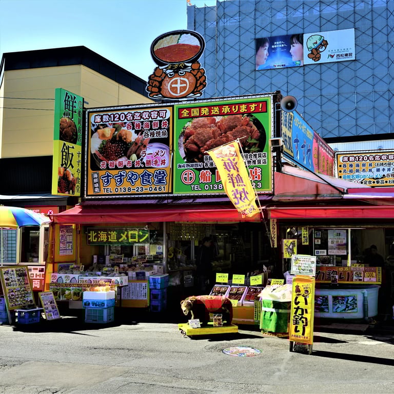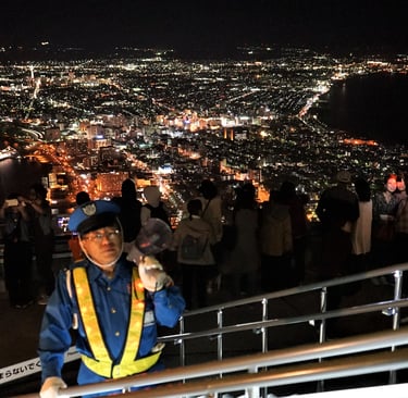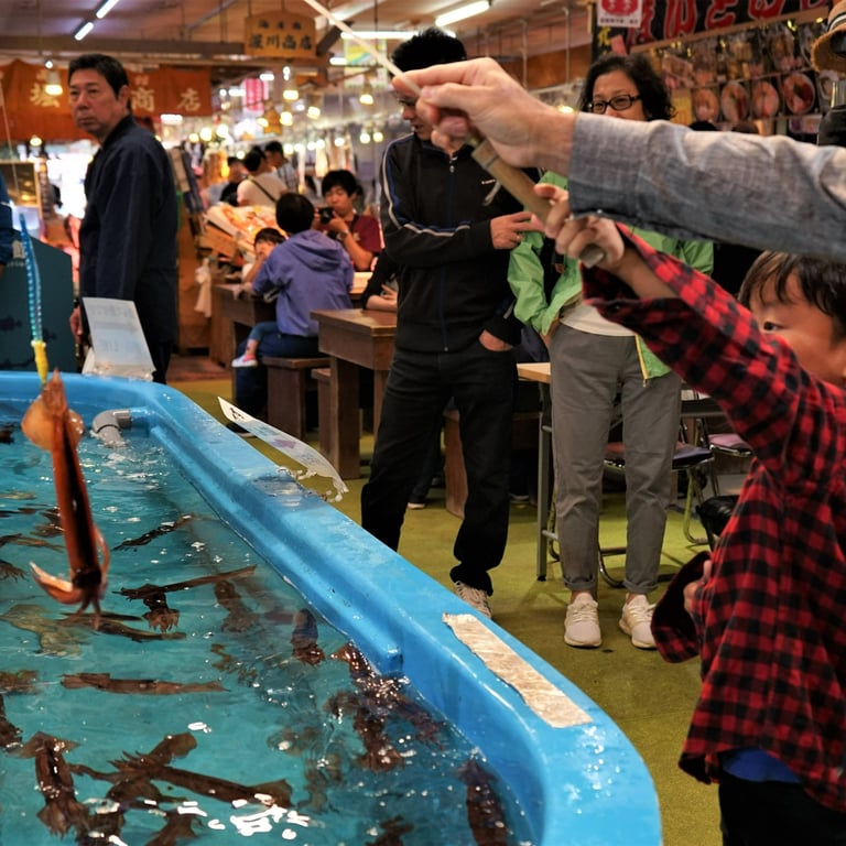 Hakodate is a large city in south-west Hokkaido. One of the ‘must-see’s is the morning fish market. To say that the fare is fresh is understating it rather. In fact, you point to what you want, swimming around in the tank and it’s on your plate within minutes. Watching folks fishing for squid before informing the kitchen how they want it cooked was fascinating (sort of). I even observed folks jabbing at an octopus on their plate with chopsticks as it tried to make a hasty exit.