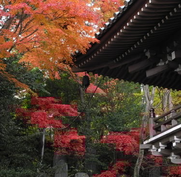 Narita is a lovely town near to the international airport. The centre is pretty much like any urban scene in Japan, there does seem to be an imprint comprised of Japanese uniform architecture and the regular franchises dotted about. But, wandering down the hill towards the park are rows of more 'olde worlde' shops selling local foodstuffs (unagi or eel is popular), and souvenirs. The park itself is large and takes some time to traverse, especially if taking in temples as well. I have wandered through several times and in different seasons, with autumn being the prime time, as seen here.