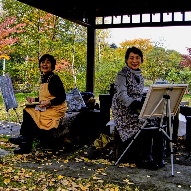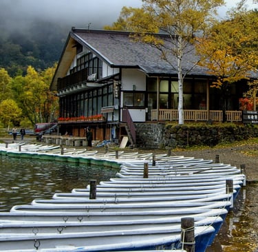 Karuizawa is an hour or so by the Shinkansen train from Tokyo. If you are wealthy it is the sort of place that you buy your pied-a-terre, or some huge mansion in sprawling grounds. It is also near to ski country, added to which there is the attraction of the autumn leaves. Wandering along (or rustling along) the back roads in November leading to the main event, the picturesque lakes, the roads are just as photo-worthy. Everyone's front drive looks like it is straight off a film set.