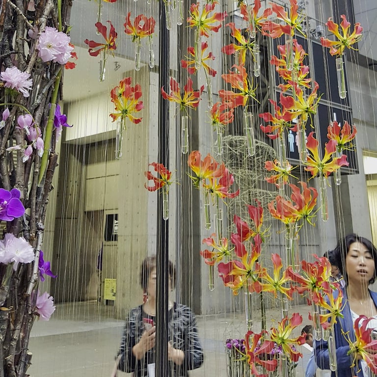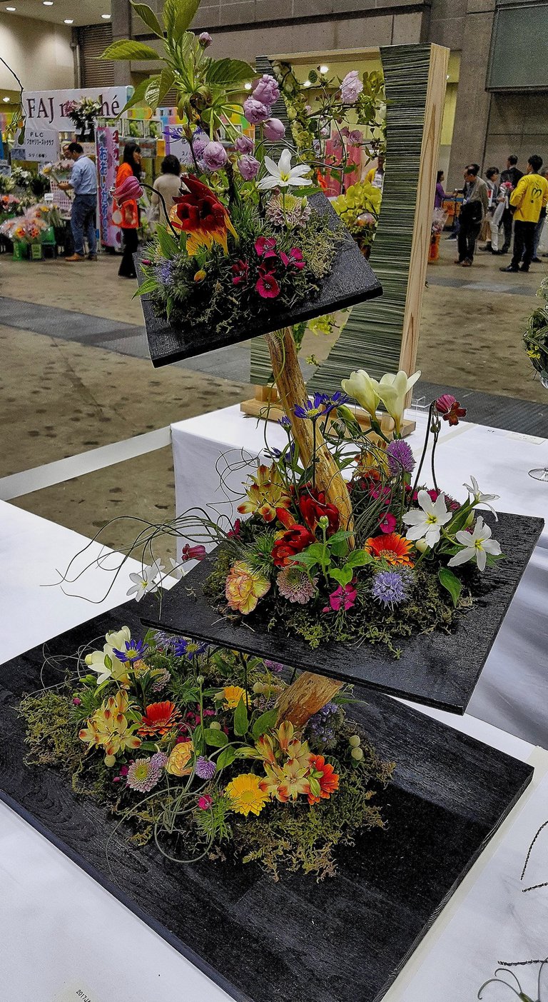 The Tokyo Big Sight is an arena that hosts events next to Odaiba Seaside Park, which is adjacent to one of the venues for water sports in the Olympics. It is big, it’s true, and quite a sight too - so, well named! The hangar sized halls are set up such that several expos can take place at the same time. This particular one was about floral arrangements, which happens to be a thing in Japan. There were all manner of weird and wonderful entries, along with ‘have a go yourself’ tables and a TV live action, timed competition - a kind of 'beat the clock' with a random selection of flowers and stalks. So creative!