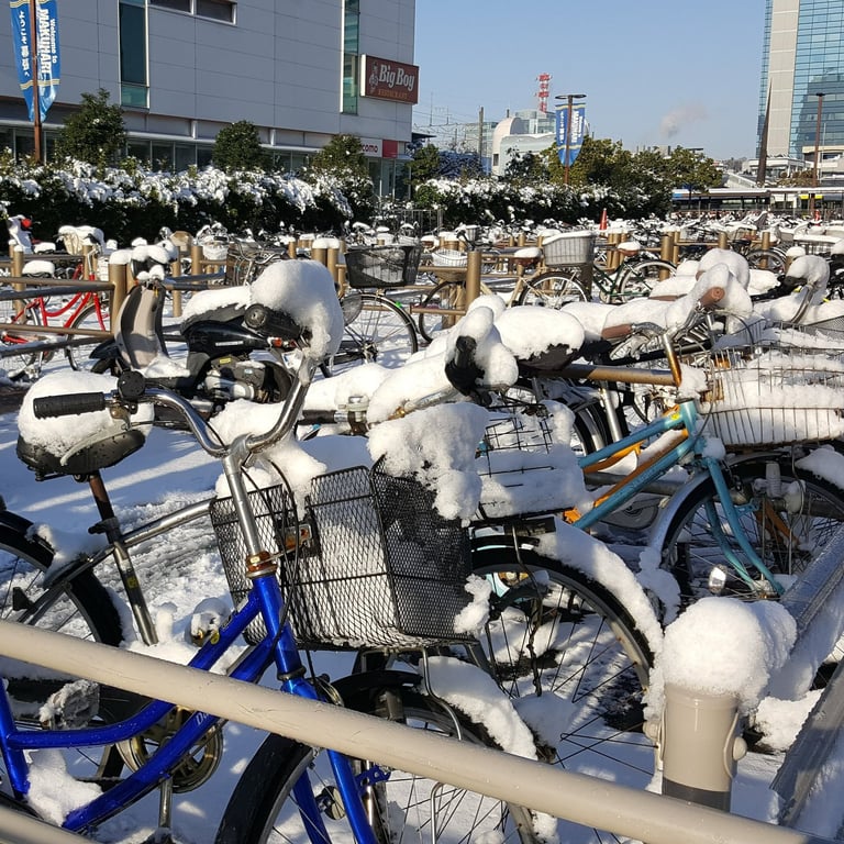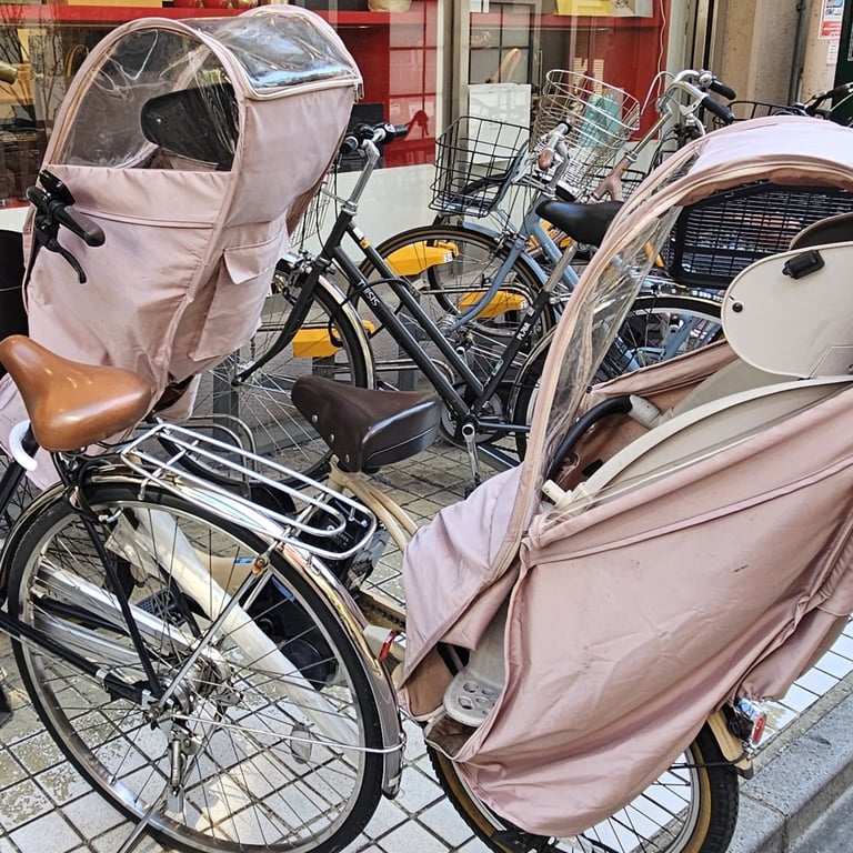 The first time I went to Japan with my bike I was a bit taken aback that you are not allowed to take a bike on a train unless it is in a bag. Living there brings understanding. The basic MO of getting to work is riding your bike to the train station and leaving it in one of the many bike-parks. It all makes sense. Imagine if all those commuters took a bicycle onto a crowded train carriage! Even if you leave your bike up against a wall somewhere you will be looking for it later at the local police compound, so regulated is the bike-o-sphere. Soon you will be keeping spare items of clothing at work, ready for when you arrive soaked with sweat or rain or half frozen. All part of the fun. A trip to the supermarket is taken care of with baskets fore and aft. What about the kids on the school run? Sorted - take a look at those mom-bikes!