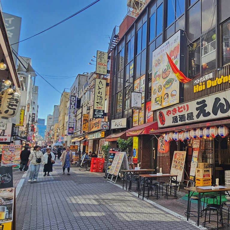 Ueno is a great place to stay if you are going to be exploring Tokyo by using the train and metro system. Ueno JR Station intersects with many other JR and Metro lines, including the handy circular Yamanote Line. You can also connect with five Shinkansen lines going north. Ueno Park is well rated for Hanami, and you’ve got the famous Ameyoko Shopping Street for the buzz in the evening. Here there are all kinds of stalls, plus a huge choice of restaurants. If you look at online reviews, it is one of those places that draws lots of ‘5’s but also ‘3’s. I am nearer the 3 end of the scale, simply because I find that the restaurant barkers out front tend to rope foreigners in then usher them upstairs to pack them in, which likely wasn’t what attracted them in the first place. The food is often only so-so as well, quantity holding sway over quality it seems. Apart from that, the atmosphere is a definite 5!