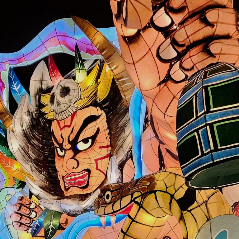 The Nebuta Festival is held in Aomori in the first week of August and can attract two million spectators. The festival is comprised of up to twenty giant floats featuring Nebuta creations of illuminated, decorated paper over a wood and wire frame. Nebuta artists are much lauded, with only six ever being granted the title of ‘Master’. The festival owes it origins to the warding off of drowsiness caused by sleep demons, the natural enemy of the local farmers. Quite right, too! Previous Nebuta designs are on display in the Wa-Rasse, which is the city’s nebuta museum where you can appreciate the size of the 9 metre long and 3 metre tall behemoths.