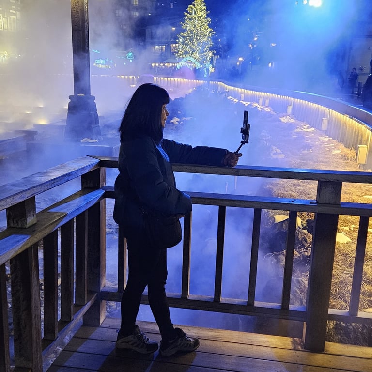 Kusatsu Onsen is located 200 kms north-west of Tokyo and has been a popular spa-resort since the 1800s. Its waters are said to cure all maladies except lovesickness! Although the town has a population of only 7,000 it welcomes over 3 million visitors every year. The centrepiece is the bubbling turquoise pond, Yubatake, whose waters flow into a series of wooden cooling troughs. Around this natural phenomenon are a circle of buildings in retro-Taisho Roman and Edo styles. These eateries and souvenir shops all bear the tag ‘boutique’ comfortably. As if daytime wasn’t photogenic enough, the evening lights plus steam will have your phone slavering (or something like that).