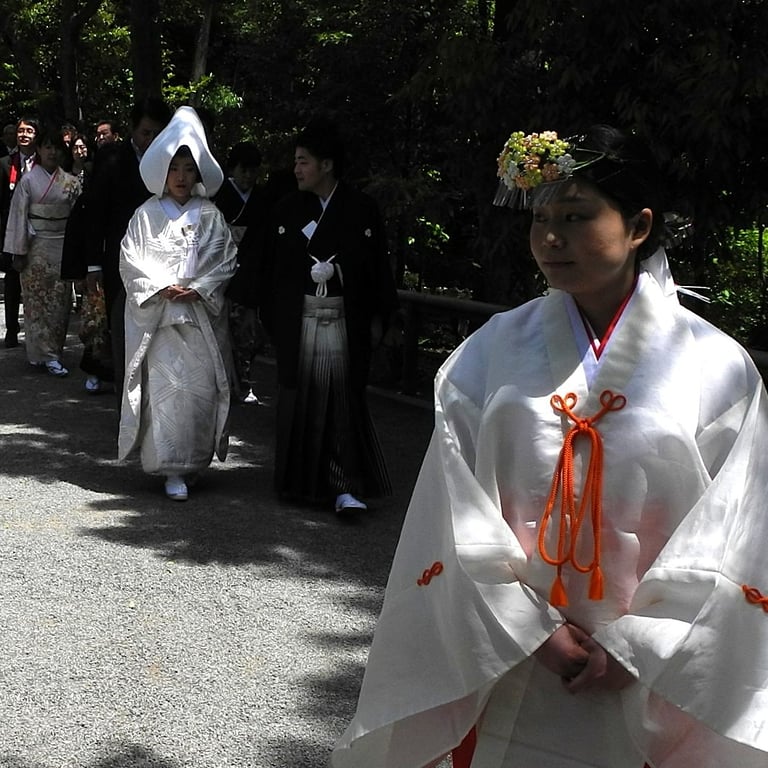 Kamakura, south of Yokohama, is an easy day trip from Tokyo being less than one hour away by train. It is famed for the giant outdoor copper Buddha and shrine. Travelling there on a public holiday was a bit of an adventure, with seemingly half of the population of Tokyo having had the same idea that morning. Japan being Japan, they sure know how to organise though, attendants with megaphones were on hand to help everyone shuffle up the stairs and along the platform to get the train. It really was impressive how the crowd stayed in step, in rows, in an perfectly choreographed procedure. Clickers clicked authoritatively as a set number were at last released group-by-group to calmly move forward to fill up the train. The bonus of a wedding also added a touch of glamour to the day.