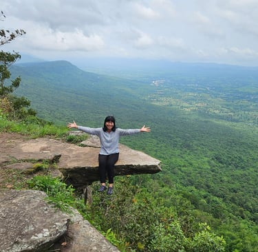 I’ll say this much, there is some serious kit on show on the campsites in Thailand. Oddly enough, it isn’t an RV or an actual tent that catches the eye, it is a purpose-built awnings attached to the side of the SUVs with a ladder up to the roof where there are sleeping quarters tailored especially for the size and exact shape of the car. Under the canvas shelter, members of the family clan are invariably huddled over a steaming pot of something that probably qualifies as lunch (just about). Still, you’ve got to like camping a lot to put up with these kinds of crowds, it being a long-weekend Buddha holiday and all. The temperature is cool at this elevation and the strong breeze reminds you that there’s quite a drop as you pose teetering on the cliff tops at Sut Prae Din. Park Rangers are on hand to courteously help you on and off the ledges, in a nod to H&S. I guess falling into the abyss would dent the Parks Dept’s bonus rate rather. An incentive of sorts.