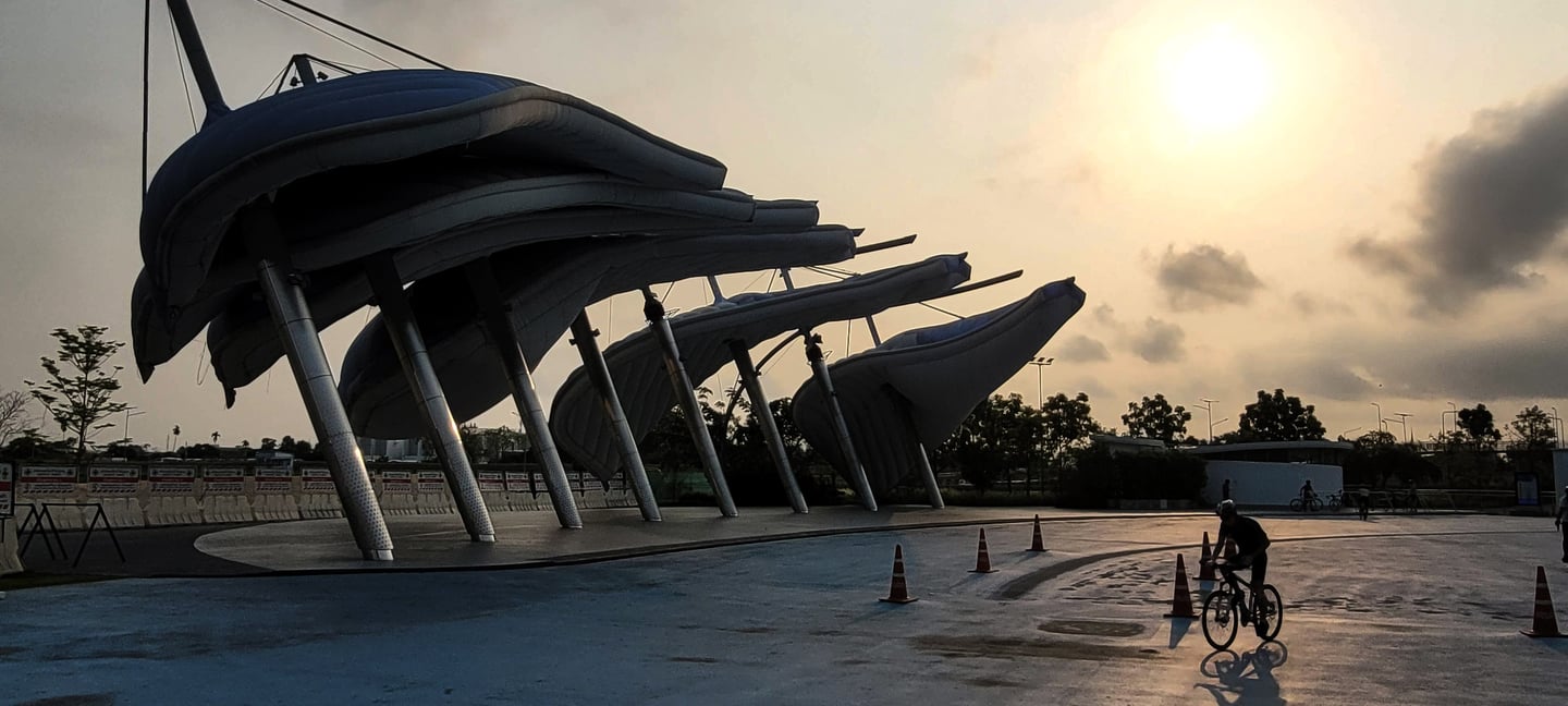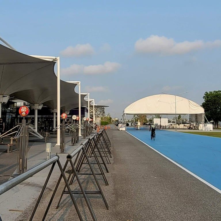 Years ago, I was in my local bike shop in Saigon (downstairs in someone’s house), when I spied a carbon triathlon bike with a price-tag of $14,000. “Who in Vietnam would pay 14k for a Bike?” I asked the shop assistant. Without missing a beat, she replied, “Old person like you.” Cheeky. Having just visited the cycling track that goes round Suvarnabhumi Airport, I can confirm that this is indeed true. Another category that can reasonably be added to that is, 'moneyed folks' who have just got to have the top brand. To be sure, there are some seriously slick bikes on display – don’t, whatever you do, turn up with your rusty Mary Poppins number from the garden shed. The track is 25 kms long, with rest-drinks-toilet blocks every 6 kms. The set-up is super, offering lots of cafe choices for the après, and much merchandise to ogle. BYO or rent a bike-helmet for 400 baht. Early morning or evening are the most popular times. See you there! (I assume that 'Happy & Healthy', as a venue name, sounds better in Thai than it does in English.)