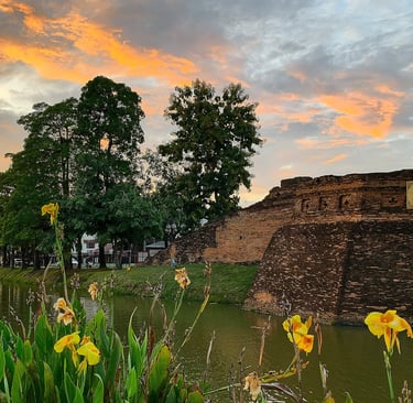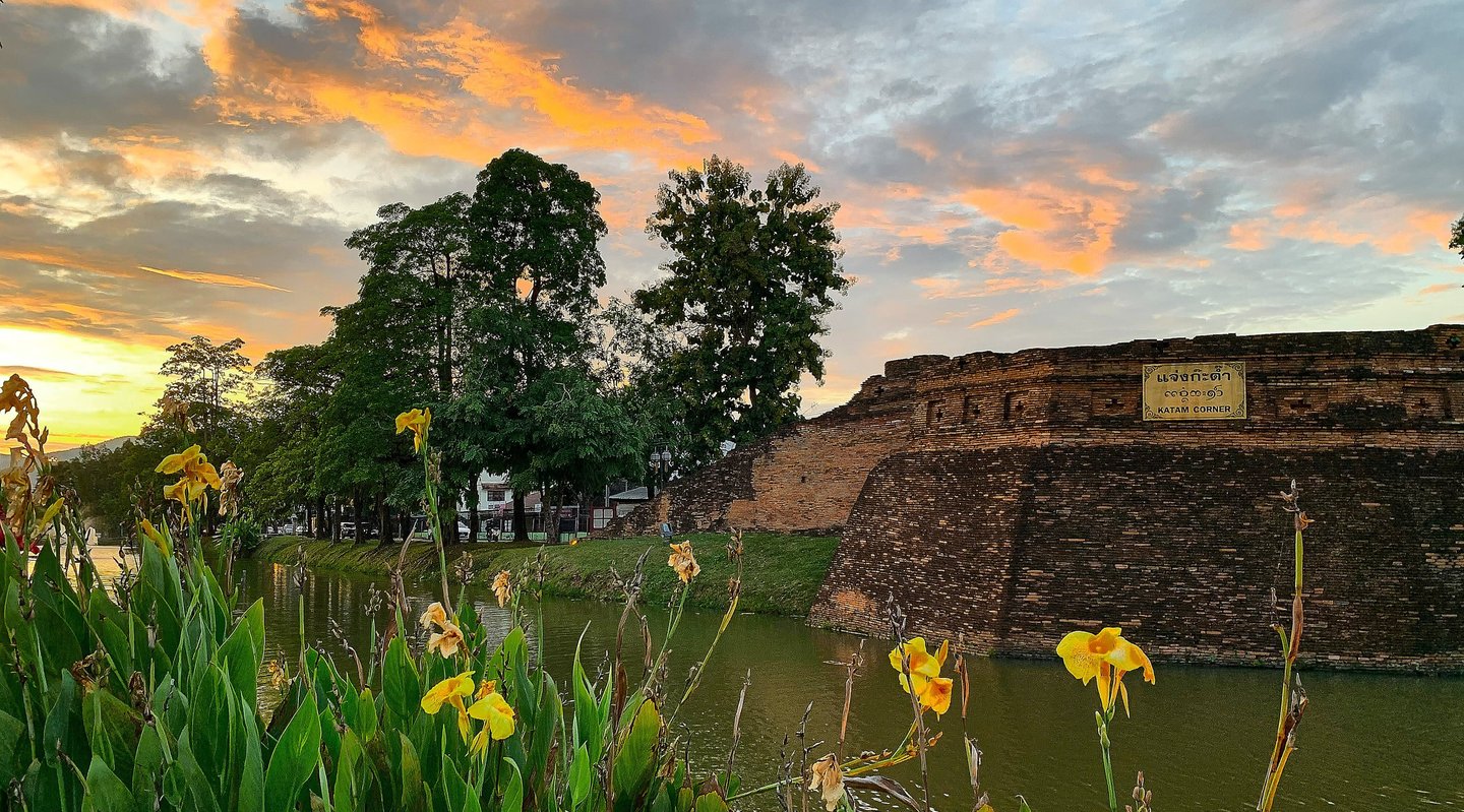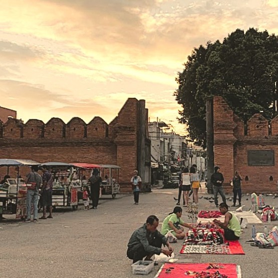 When Chiang Mai was founded in 1296 it was built inside a square bounded by a moat and city walls. There has been much destruction over the years, but the walls have been restored in places and do give a ‘walled city’ feel to the place, even though the town now sprawls outside in all directions, with fast ring roads to take you hither and thither. The four gates and noted corners of the walls are still focal points, such as Thapae Gate on the east side and Jaeng Katam on the south-east corner. Driving round either side of the moat you have to keep your wits about you, switching lanes repeatedly, as you anticipate the cars, bikes and baht-buses joining abruptly from U-turns and feeder roads. Or you could let the red baht-bus worry about those things. Starting your evening off? Meet at Thapae Gate and take it from there.