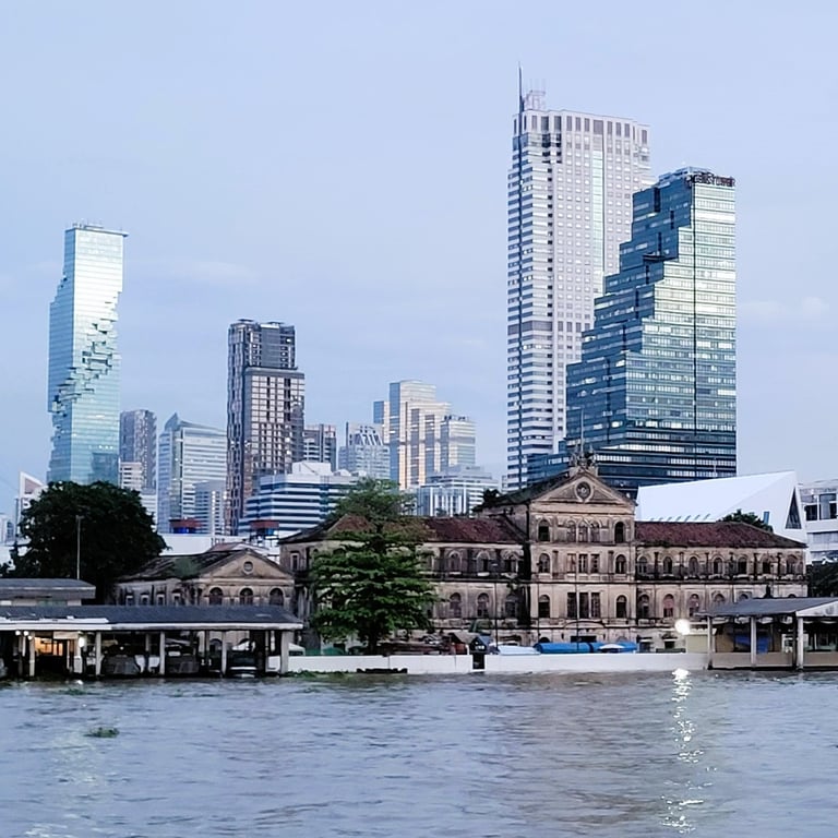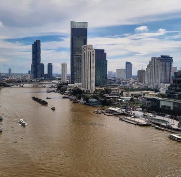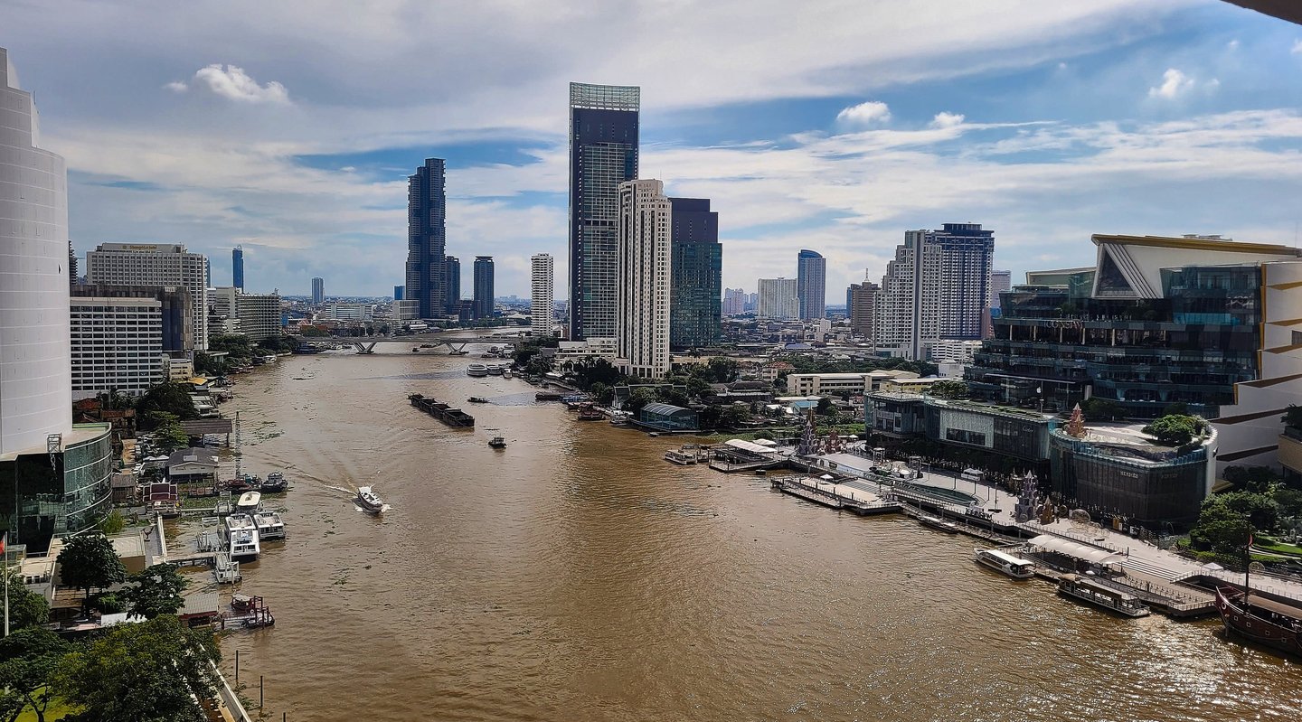 Bangkok’s, indeed Thailand’s, main river is the Chao Phraya which officially begins at the confluence of the Mae Ping and Mae Nan some 375 kms inland (if you count the source as the beginning of the Mae Ping, it is over 1,200 kms long). By the time it gets to Bangkok it is of considerable size and width. It is a working river, so when you board your ferry to cross to the other side or commute up and down you are mindful of the water-traffic chuntering along in all directions. Zipping along if we are talking about the long-tail boats; bludgeoning along if it is barges. There is something menacing about its dark, churning waters – not just because of the possible effluent and industrial waste therein, but also because collisions do happen! Always note where the life-vests are when you board.