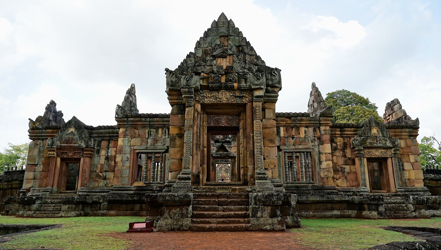 The complex at Phanom Rung is quite remote and stands on a hill in the middle of a flat plain. It is contemporaneous with Angkor Wat and was part of the Khmer Kingdom at the time, seemingly a way-point between Angkor Wat and Phimai. Perhaps it is the building stone or the fact that the renovation was more recent, but the state of presevation at the site is impressive. Of note: the sun shines directly through a line of E-W portals at sunrise, twice per year. Pictured here, a group of monks setting off towards the site along the processional walkway, having first posed for the obligatory group photo.
