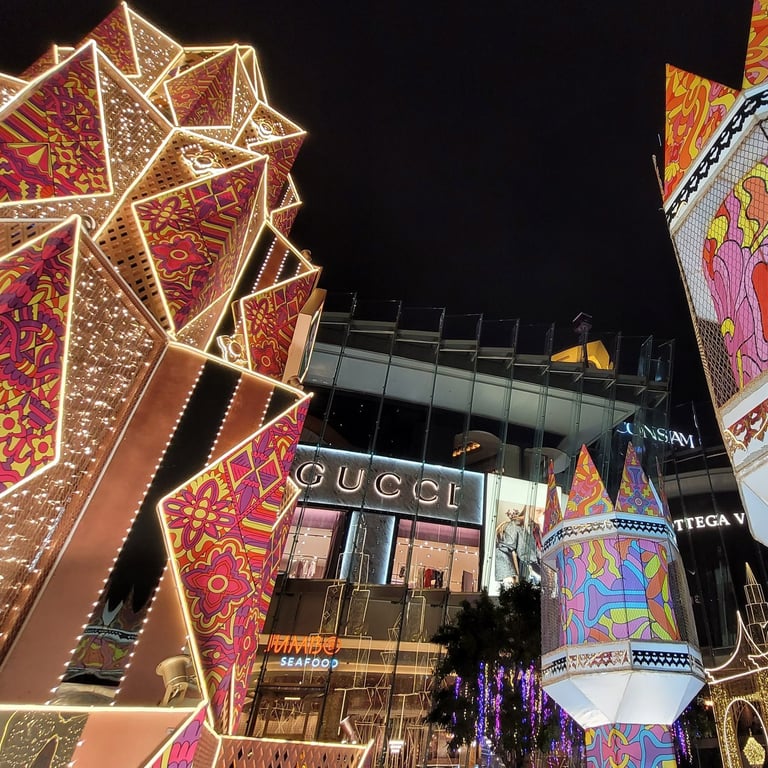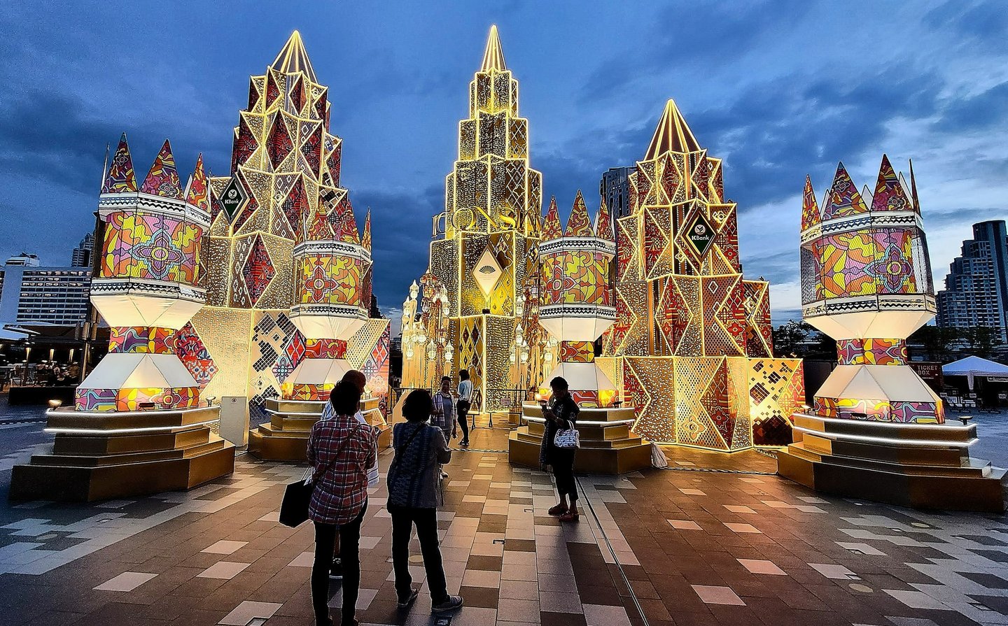 I can’t imagine many places can compete with Bangkok for shopping malls. In fact, folks commented on the fact that the BTS Skytrain may have been built in order to directly connect all the malls. Some small truth there, especially on the Sukhumvit section. The other thing about the malls is that when it comes to décor, for celebrating some festival or other, they really do pull out all the stops. You can stand agog at Central World just before Christmas, or Emporium during Chinese New Year – crane your neck, please do. Or this one at Icon Siam in October – ‘October? Because we felt like it!’ South of the river, arrive by boat!