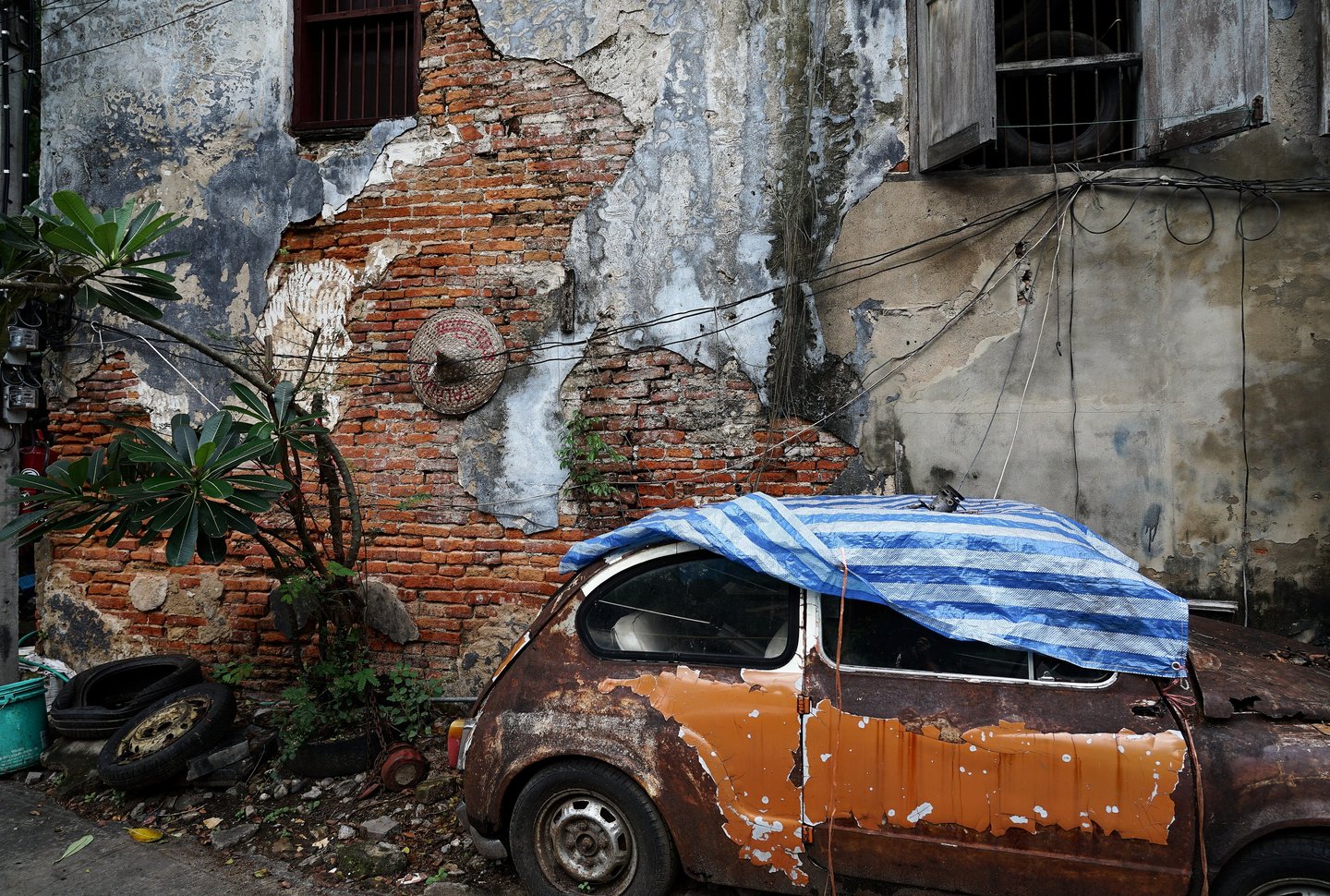Wandering around the hot and sweaty backstreets of Talat Noi, an old Chinese community on the river in Bangkok, you can see into the open-grilled shophouses as you shuffle by. Folks sitting nonchalantly in white vests (always white vests) tend ancient, oily machinery that clanks away. What are they making? Who knows! But you can bet generations of the same family have been doing it in the same shop since they first moved in. As you round the bend you spy a photo-opportunity of a rusty old Fiat wedged against the wall. You feel pleased with yourself until you get home and realise that everyone and his dog has shot that exact same photo. Talat Noi, is 'Little Market' and features a great deal of street art too.