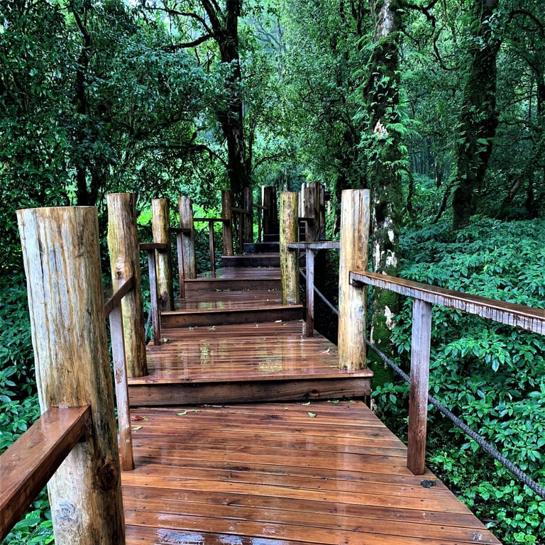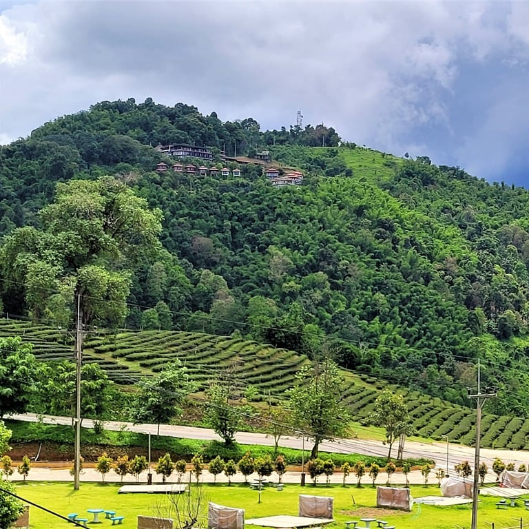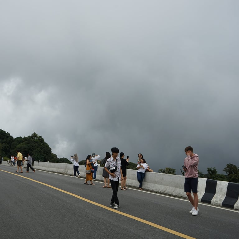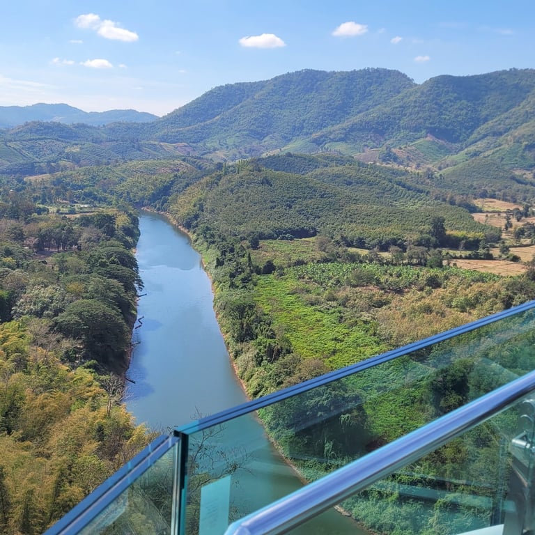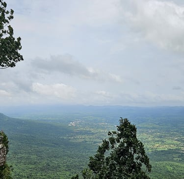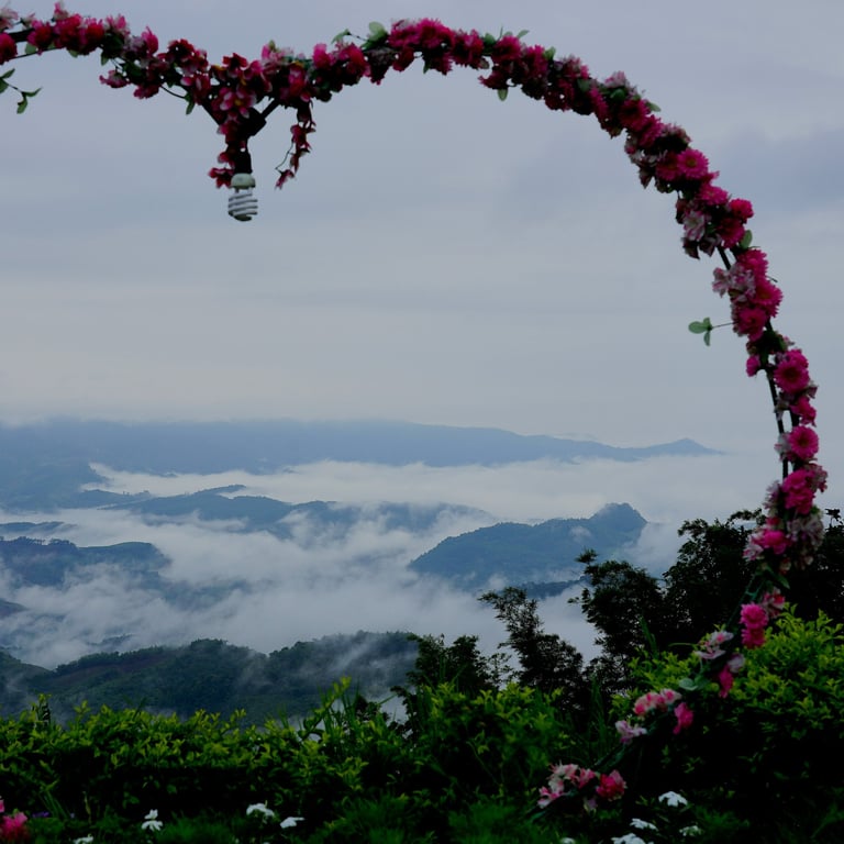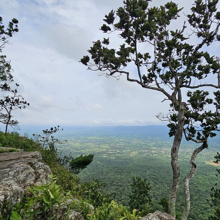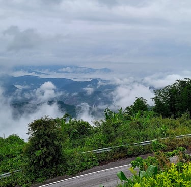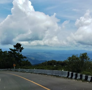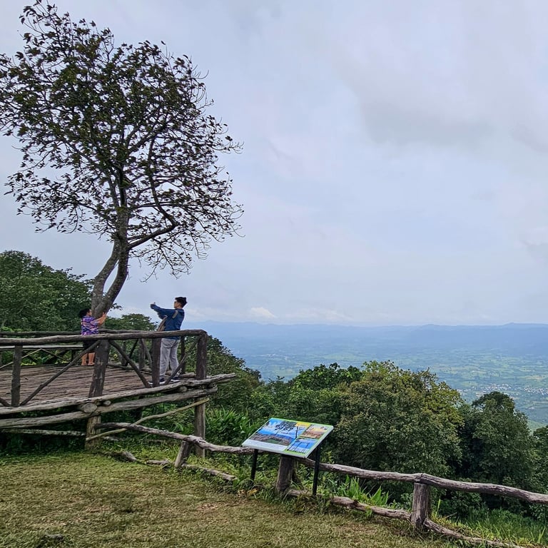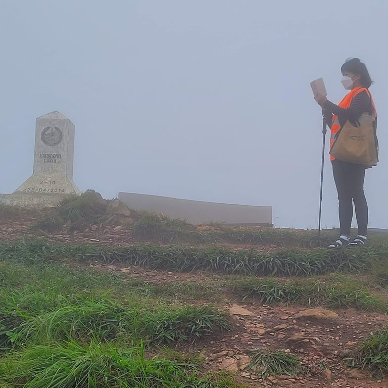 Phu Chi Fah is a peak in Chiang Rai Province that overlooks Laos. It is known for its breath-taking views, but you have to get the season right, otherwise you will be enveloped in clouds. It is 295 kms north of Nan or 95 kms east of Chiang Rai. The journey from either direction encounters steep gradients, especially in the final approaches, so plan for long drives. There are many small resorts and glamping options nearby, but expect crowds in high season, winter being best for clear skies. This trip was in the month of June, so the view to Laos at the top was actually the view to my muddy trainers (just about). No crowds though - small consolation!