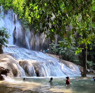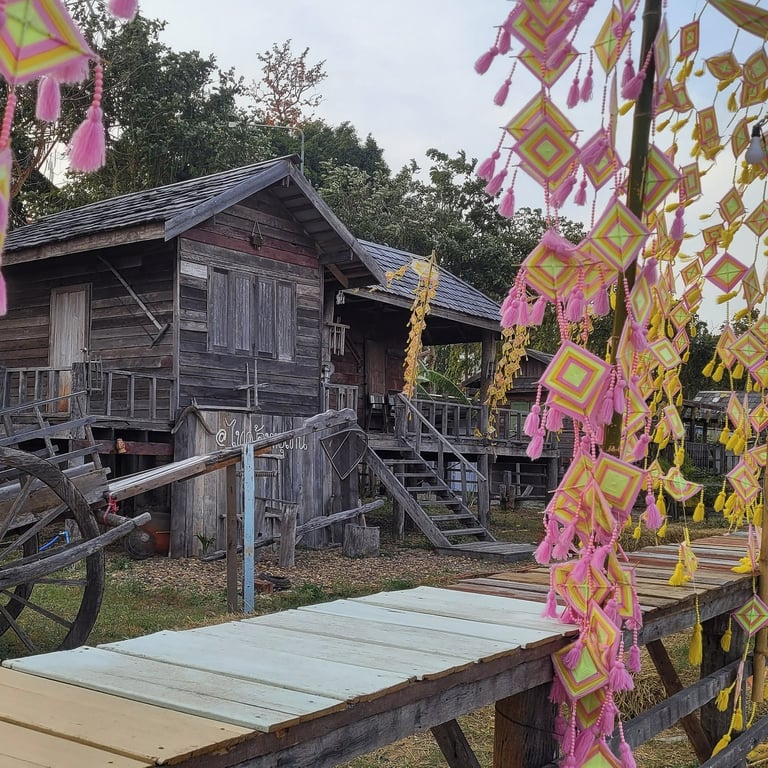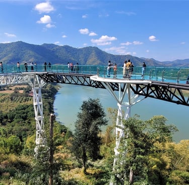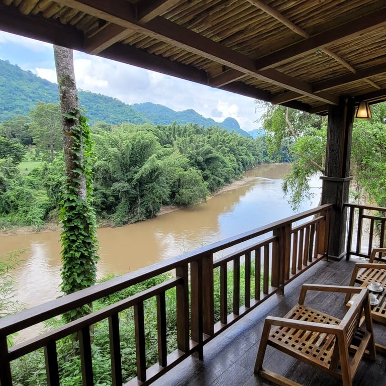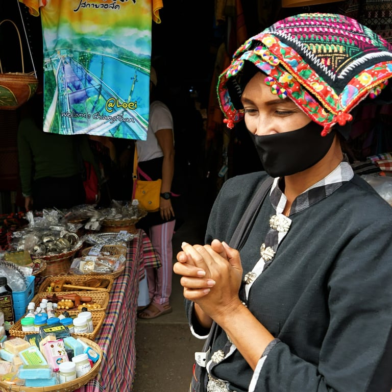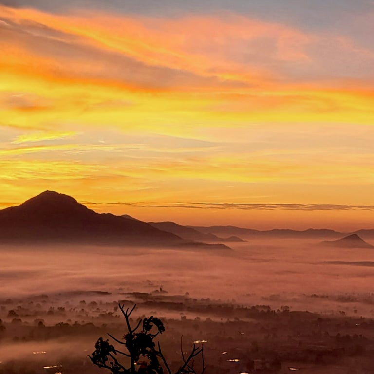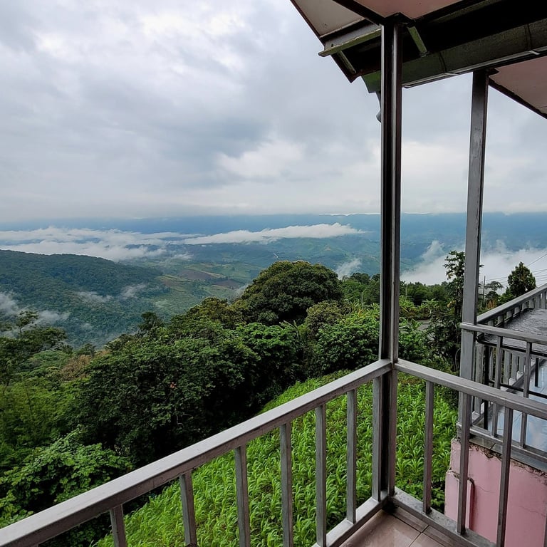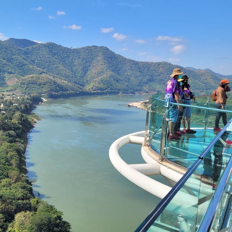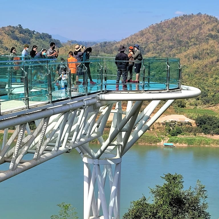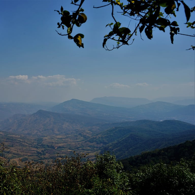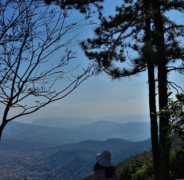 Phu Chi Fah is a peak in Chiang Rai Province that overlooks Laos. It is known for its breath-taking views, but you have to get the season right, otherwise you will be enveloped in clouds. It is 295 kms north of Nan or 95 kms east of Chiang Rai. The journey from either direction encounters steep gradients, especially in the final approaches, so plan for long drives. There are many small resorts and glamping options nearby, but expect crowds in high season, winter being best for clear skies. This trip was in the month of June, so the view to Laos at the top was actually the view to my muddy trainers (just about). No crowds though - small consolation!