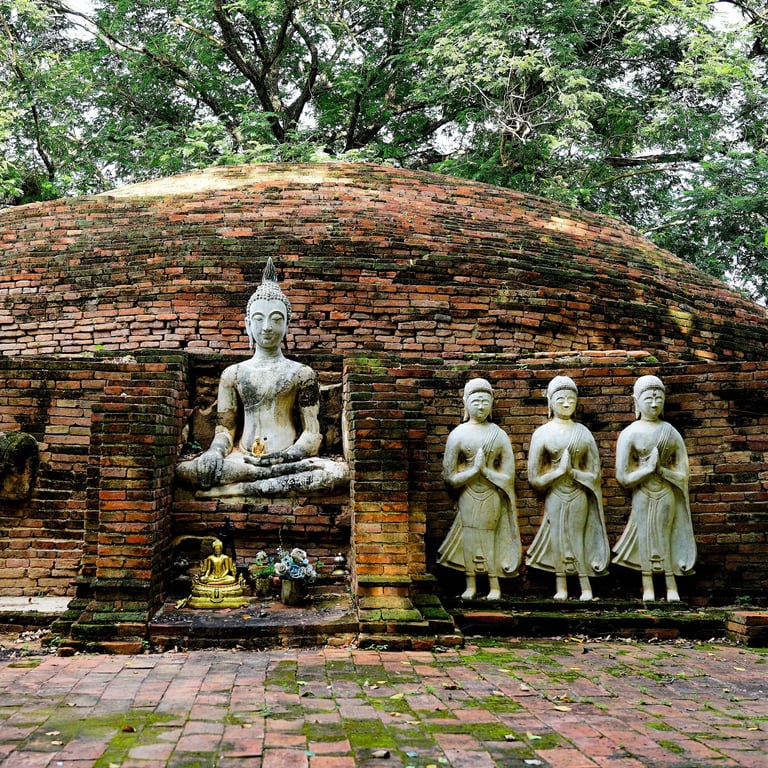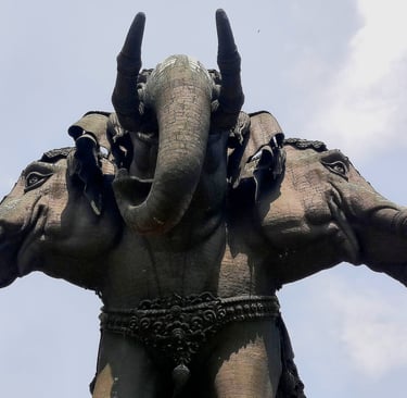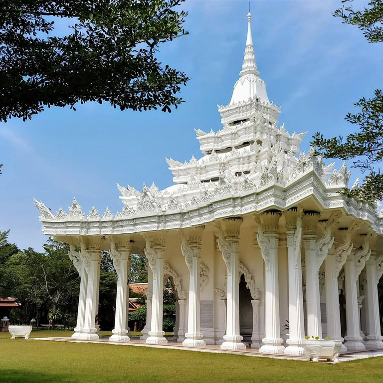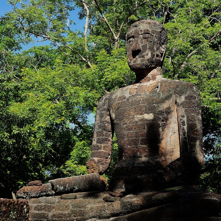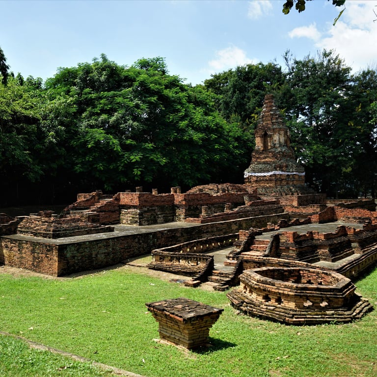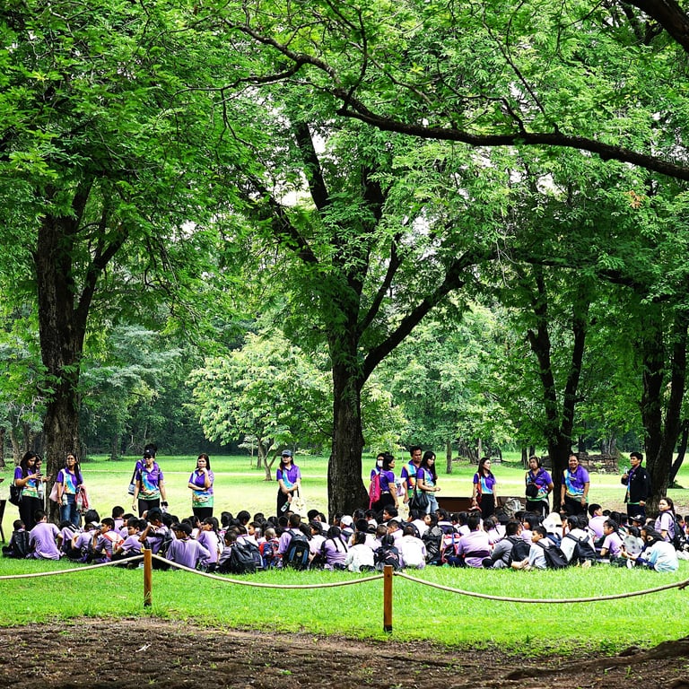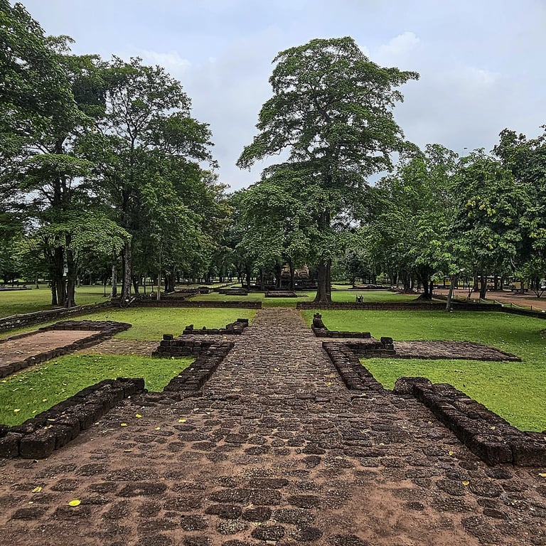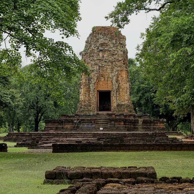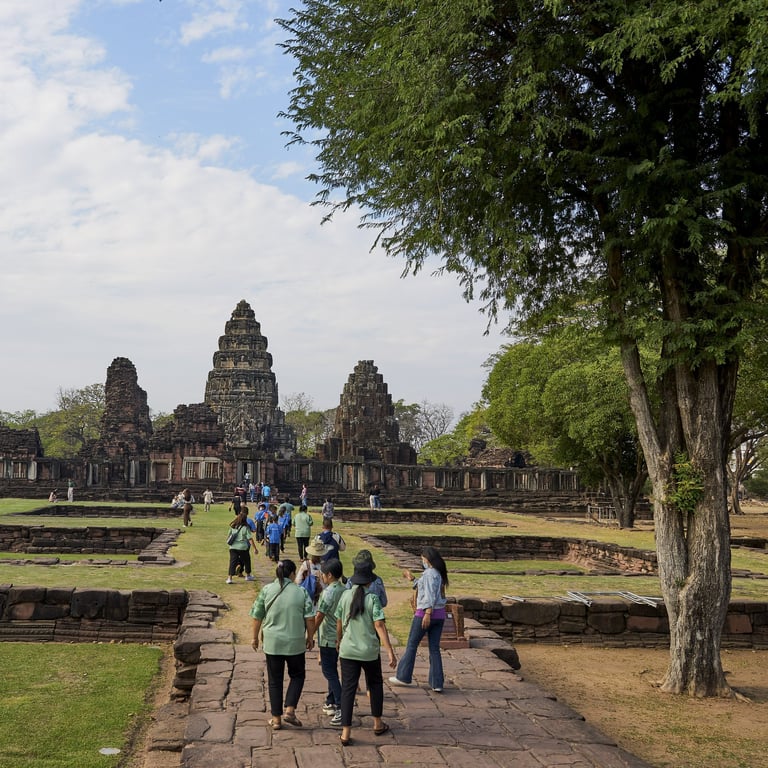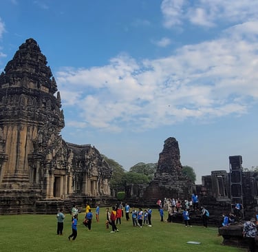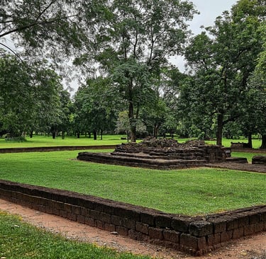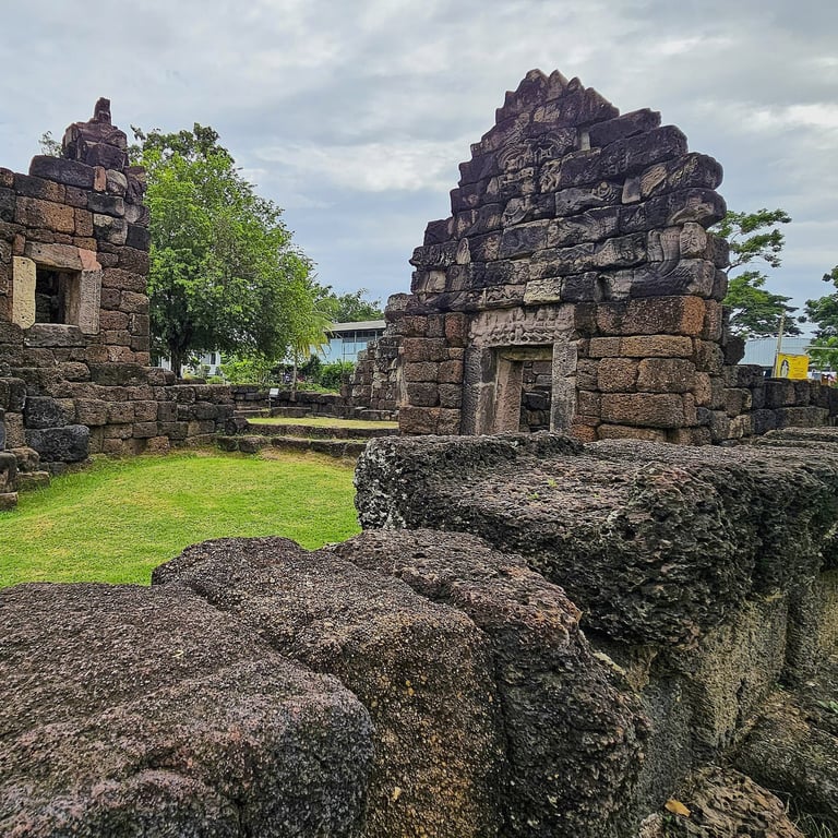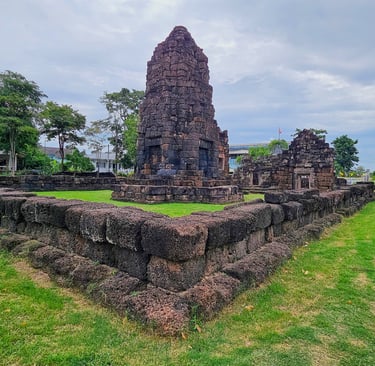 Si Thep shows evidence of settlement from 2,500-1,500 years ago but became a city state from the 6th century. The size of the site is evidenced by the fact that it is far too big to walk around. The electric trolley-buses take you for a ride, stopping at three key sites located kilometres from the entrance. Walking round after being dropped off, there aren’t many clues as to what you are looking at, unless the faded QR codes were a DIY solution (bleached beyond phone recognition). Groups of school children were being marched round and seated for a teacher-plenary. I wondered what they learned? I recall that my equivalent school trips involved an awful lot of mucking about and not a lot of listening, apart from the one to Cadbury's in Bournville!