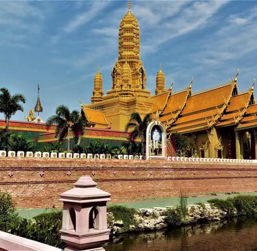 Meuang Boran or Ancient City is located thirty-six kms south of Bangkok. It is an open-air museum, the largest outdoor one in the world apparently. To get round you need to drive yourself or hire a golf buggy. Each of the 116 structures is a sight to behold and sets out to preserve Thai heritage from pre-historical times to the present day Rattanakosin Dynasty. There is also a replica floating market surrounded by walkways and restaurants, so you can take a boat trip which docks in time for lunch.