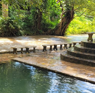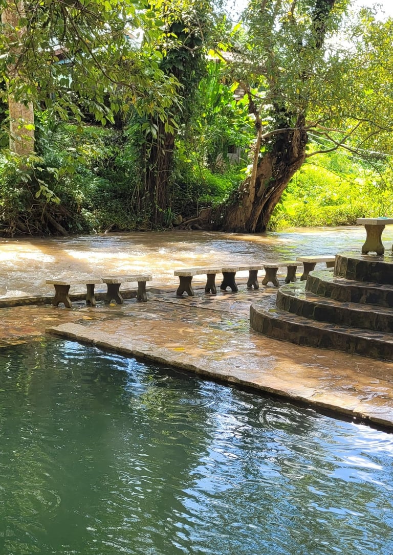 There are a number of places in Thailand where you will find hot springs. Doi Saket Hot Spring is one of them; it is on the main road, 35 kms east of Chiang Mai. You can dip your feet in a communal channel, buy some sulphur infused hard-boiled eggs or rent a private bath for 100 baht per person. What could be better than sitting in the life-affirming waters while watching the cows in a field, knowing that your skin will feel really smooth for the next ten days? Jumping in a cold river straight afterwards perhaps? You can do that at Hindad Hot Spring (pictured above), north-west of Kanchanaburi where a river runs alongside the thermal pool.