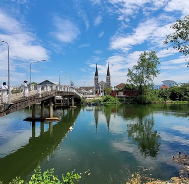 The province of Chanthaburi in the south-east of Thailand is known for mining gemstones, especially rubies and sapphires. Chanthaburi town is a sizeable regional hub, but the focus for tourists is the Waterfront Community, settled over 300 years ago. This merchant neighbourhood became the commercial centre of the town, astride the Chanthaburi river. The Chinese and Vietnamese settlers there had a cultural impact that can be seen today. Walking along the main thoroughfare, the old shop frontages are noticeably in Vietnamese and Chinese styles. Pagodas and Catholic churches, including a cathedral, are also prominent. Many non-locals were manning the gem stalls - South Asian and Middle Eastern in appearance - I'm guessing there's money to be made.