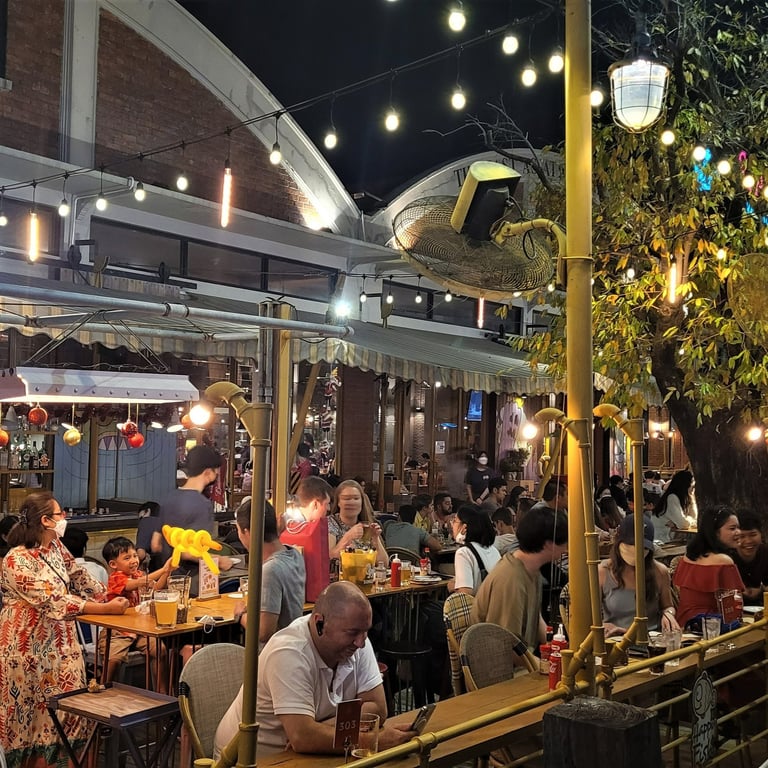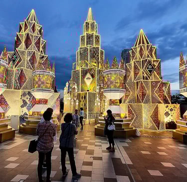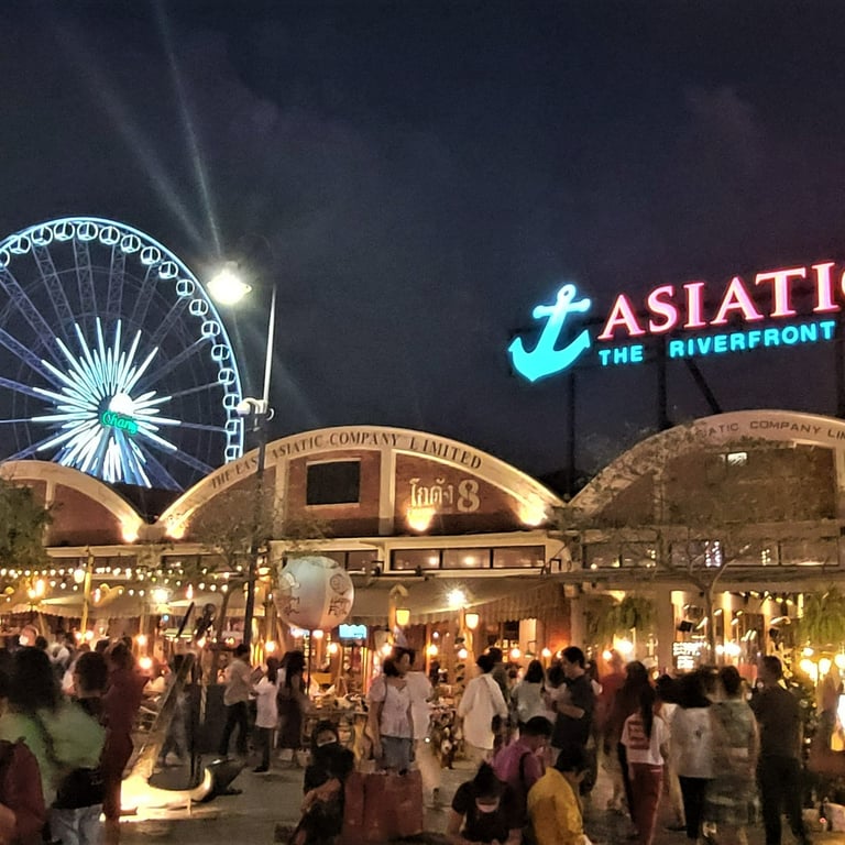 Asiatique The Riverfront on the Chao Phraya River is a collection of old warehouses that have been converted into bars, boutiques, restaurants and exhibition halls. It is also the starting point for river cruises. At the weekend the place is abuzz with folks enjoying the fairground and the night scene. Mind you, these shots were taken on Christmas Day just after the lockdown had finished, which might have accounted for the lively atmosphere. Exhibitions are also held there, including things like the recent Disney 100 which featured Frozen, Pixar Putt and Marvel Universe halls. There is a free ferry from Saphan Taksin river stop, a short walk from the BTS station, so it is not too difficult to get to.
