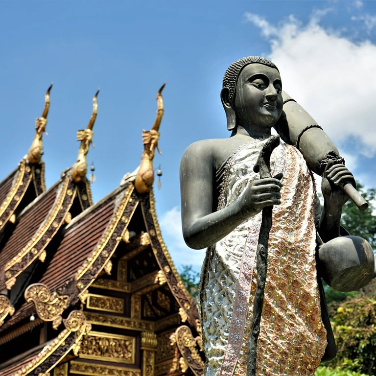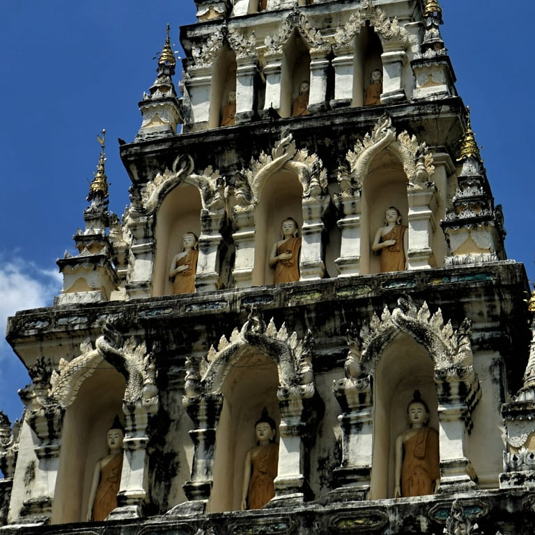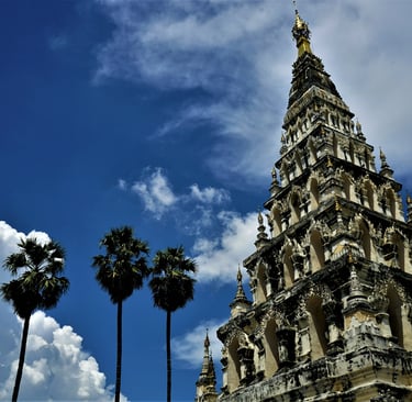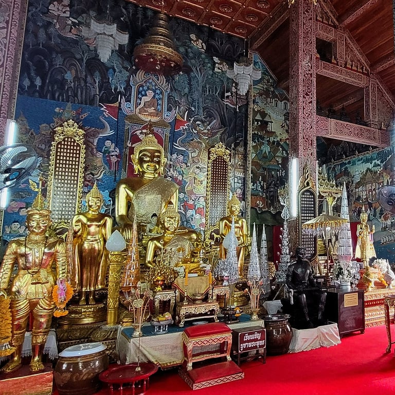 The province of Nan was an independent kingdom for many years, in part due to its remoteness. Its chequered history following its foundation in the 13th century includes allegiance to Sukhothai and then Vientiane, before repeated colonisation by the Burmese, who ruled until they were driven out in 1788. Nowadays Nan, the town, is a tranquil provincial capital - the mountainous province neighbouring Laos often being placed in the 'best kept secret' category. It was just recovering from the two years’ shutdown post-covid when I visited. Everything was half-paced apart from the planes above the rooftops as they descended to the airport. Nothing else moved, but the old city walls looked like that were benefiting from a recent makeover.