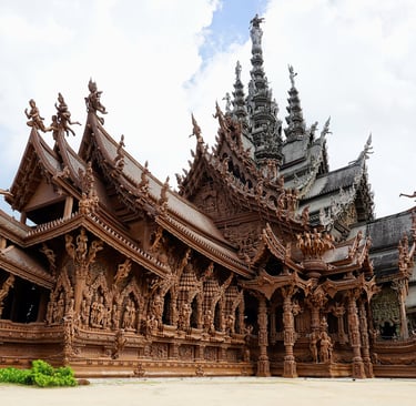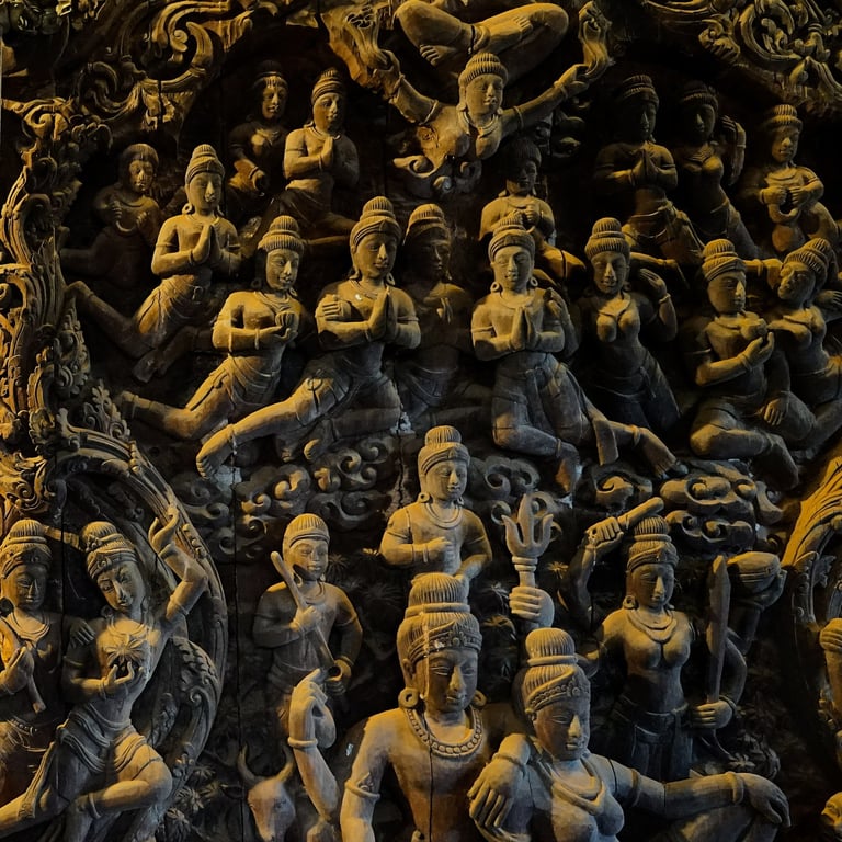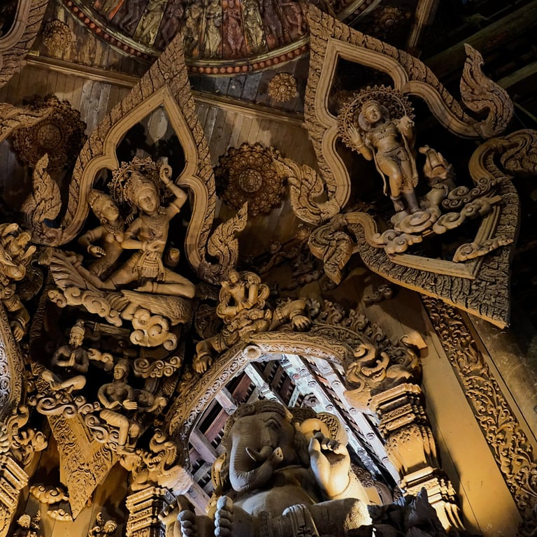 Work began on the Sanctuary of Truth in 1981 and is still going on – chip, chip, chip… When you wander round you can’t help but be agog at the intricacy on display in any direction that you look, especially upwards. It is a hard-hat visit now in groups, timed according to your language choice and guide. Guided by a worker, you can take up a mallet and chisel have a go yourself, thus being able to make a small claim to the splendour. A very small claim if we are honest! The visit is expensive, even though it is the same price as when I first visited twenty-five years ago. Slightly cheaper on Klook.