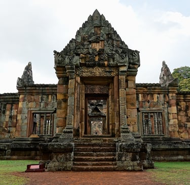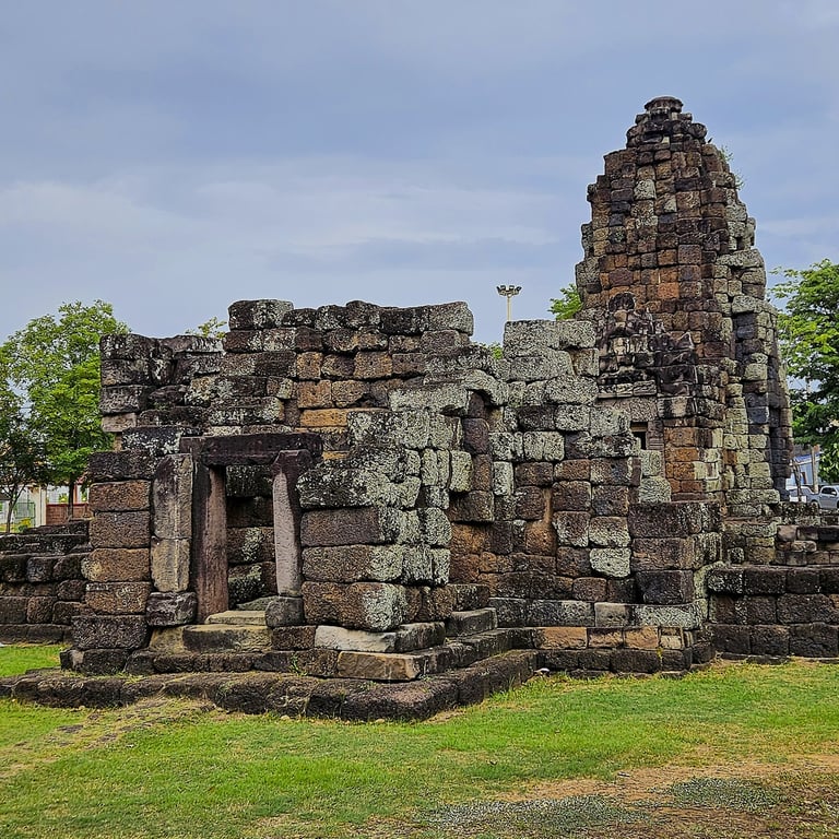 This Khmer laterite Prang (tower) surrounded by a wall, with a baray (pond) nearby dates from the thirteenth century. It was built by order of King Jayavaman VII (1181-1218), as one of the 102 medical stations located at outposts throughout his empire. Sitting just off the centre of Chaiyaphum on a back road in a quiet suburb it stands timeless and rightly oblivious to the ‘progress’ all around. Standing there, you are briefly under the spell of a remnant of an eight hundred-year-old state-sponsored public health system, no less. Evidence suggests that remedies were as much spiritual as medicinal.