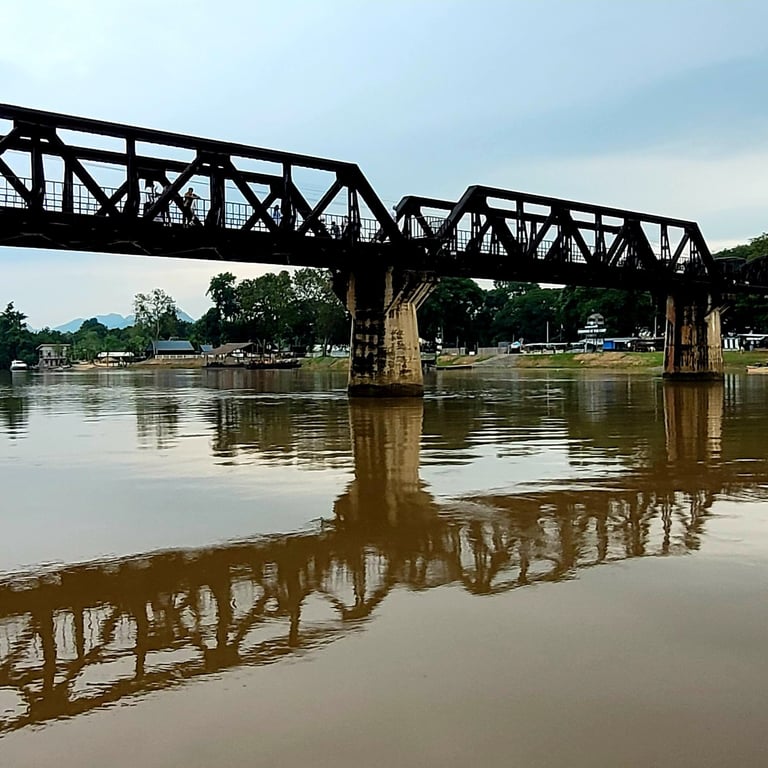 The Bridge over the River Kwai (more like Kwae in Thai) in Kanchanaburi is a reconstruction, the original being destroyed in WWII. The whole story is expertly curated at the eponymous Death Railway Museum, opposite one of the POW cemeteries, and also at the excellent Hellfire Pass Interpretive Centre, an hour's drive up the road. Kanchanaburi is also a popular destination for outdoor activities, especially water-based. You've also got hot springs and waterfalls such as Sai Yok Noi (above) just outside town and Erawan Falls, a bit further out. Or, you could simply stay at a resort by the river and just chill! Later, drive three hours-plus north-west you will arrive at Sangkhla Buri where the Mon Bridge is situated.