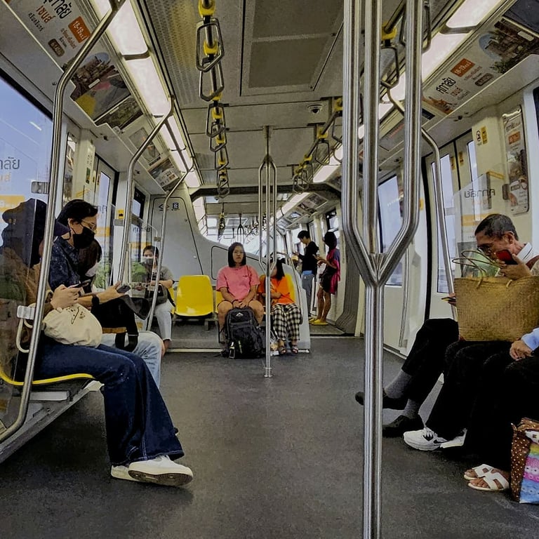 The Metropolitan Rapid Transit network in Bangkok (MRT) continues to expand with new lines serving the outer suburbs. The Yellow (to Samrong in the south) and Pink Lines (to Minburi in the east) are both elevated monorails, each being over 30 kms long and intersecting with other lines (some yet to be finished). The trains are driverless and cruise steadily at about 40 kph, with occasional 60 kph bursts. Everything is spick and span even if the experience is a little like a fairground ride. The word ‘trundle’ springs to mind as you bobble along between stops. For some reason, I was expecting a smooth, glide-like ride! Still, it is all part of the laudable, and very welcome, grand expansion of Bangkok’s public transport network.