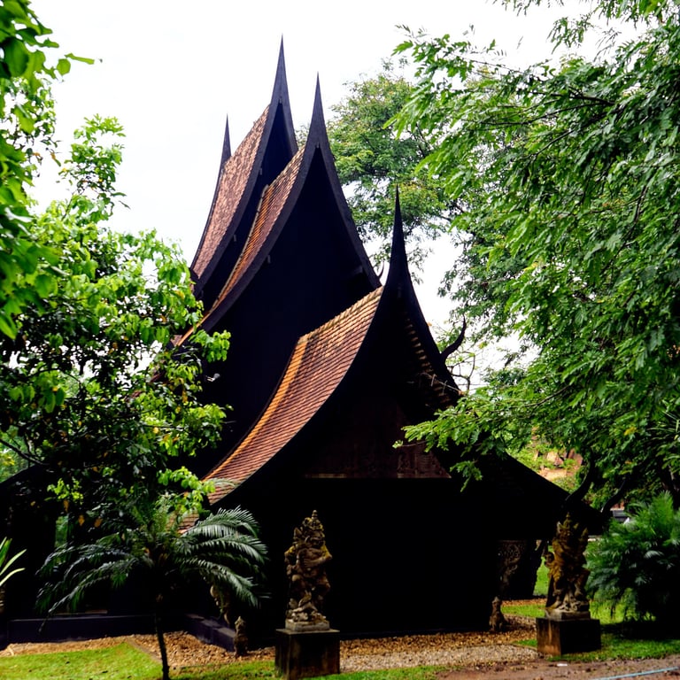 Created by the artist, Thawan Duchanee, the Black House Museum has been in development for 50 years. Just north of Chiang Rai, Baan Dam offers a startling contrast to Wat Rong Khun (the White Temple) to the south. There are over 40 separate buildings spread over a huge area, many contain artifacts from the 'weird and wonderful' category. For 'wonderful' read 'weirder-still' actually, there are some pretty spooky things on display - demon motifs, skulls, and animal skins in full-on Goth settings. Thanks to a thunderous storm we were locked in with all the windows closed, allowing imaginations in the dark to do their thing with the scary stuff close at hand.