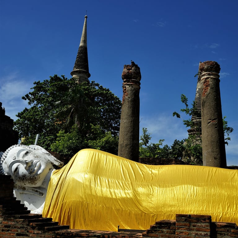 Located in Phra Nakhon Si Ayutthaya Province, the old capital is 84 kms north of Bangkok. It can be reached by road, train or boat. It is such a photogenic location with ruins, temples and riverside settings all vying for your attention, that you will likely need more than one day. Sunset at Wat Chaiwatthanaram is an obvious one to aim for but have you got the legs? At the end of the day when the light fades fast in the sub-tropics you have literally minutes to capture your shot before it has gone. Dashing back and forth through the temple grounds to frame a particular part of the antiquities in a new light or in silhouette, sure was a challenge. A moment’s hesitation and the twenty-minute dusk has gone, you will have to have another go tomorrow. Day-time is just as uplifting for your camera, mind.