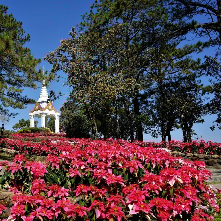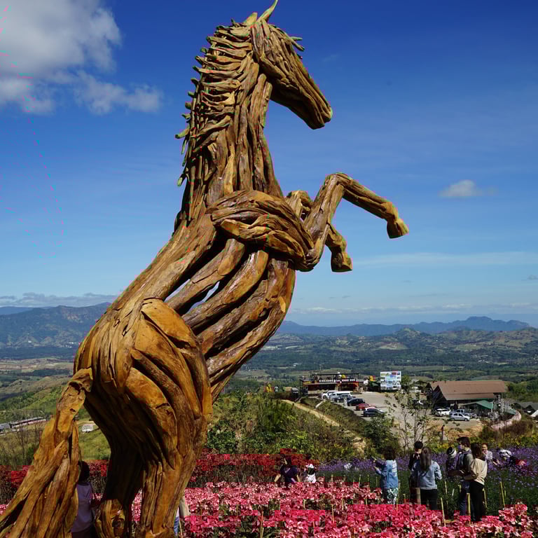 Khao Kho is an upland area in Loei Province designated as a national park. The local climate makes it a perfect destination for escaping the heat and also for market gardening and horticulture. Entrepreneurs quickly realised that fields of flowers would be a perfect backdrop for those selfies on Instagram. Twenty-baht gains entrance to the fields and IG glory for weeks to come. Just count the crowds all day on a weekend – that’s a lot of green notes in the tin at the gate.