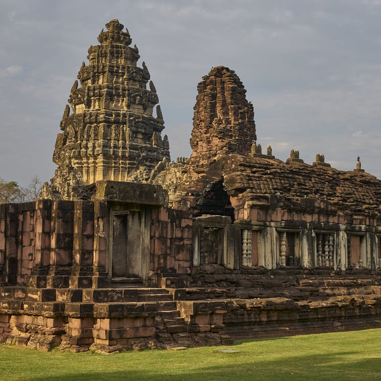 Phimai Historical Park is in the middle of Phimai town, some 63 kms from Nakhon Ratchasima (also known as Korat). The centre-piece is Prasit Hin Phimai, the Khmer temple that is orientated towards Angkor and formerly linked by Khmer empire highways. Constructed in Khmer Hindu style during the 11th-12th centuries, it served the local populace who had been Buddhist since the 7th century. The main building stone is red sandstone, which has been sculpted into large blocks. The interior walls tend to be of laterite. Since the site was opened in 1989, following restoration that began in the 1960s, it has become increasingly popular. Expect buses decanting crowds, both tourists and locals, especially at weekends. You will have to be patient with your camera to get folk-free shots, or just wander to the rear!