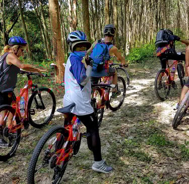 Years ago, I was in my local bike shop in Saigon (downstairs in someone’s house), when I spied a carbon triathlon bike with a price-tag of $14,000. “Who in Vietnam would pay 14k for a Bike?” I asked the shop assistant. Without missing a beat, she replied, “Old person like you.” Cheeky. Having just visited the cycling track that goes round Suvarnabhumi Airport, I can confirm that this is indeed true. Another category that can reasonably be added to that is, 'moneyed folks' who have just got to have the top brand. To be sure, there are some seriously slick bikes on display – don’t, whatever you do, turn up with your rusty Mary Poppins number from the garden shed. The track is 25 kms long, with rest-drinks-toilet blocks every 6 kms. The set-up is super, offering lots of cafe choices for the après, and much merchandise to ogle. BYO or rent a bike-helmet for 400 baht. Early morning or evening are the most popular times. See you there! (I assume that 'Happy & Healthy', as a venue name, sounds better in Thai than it does in English.)